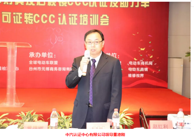 随后,中汽认证中心有限公司领导董德刚为大家带来了电动摩托车灯具、后视镜CCC认证的专业知识。