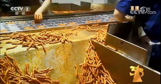 在另一家生产企业,记者看到,膨化机前地面上堆满了被烤糊的面团,远处地面上黑乎乎像炭一样的污物散落一地,传送辣条的机器上沾满了油污,现场生产环境十分的污浊。这位姓欧阳的老板介绍说,目前他们正在生产的“亲嘴牛筋”销路很好。